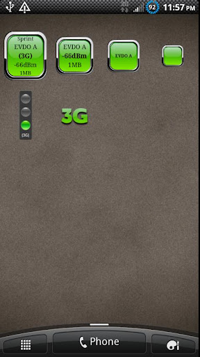 Cellular Network Widget elimina las conjeturas al mostrar la información veraz pertinente acerca de su conexión celular mientras se utiliza un sistema de código de color para mostrar rápidamente la fuerza real de la señal del tiempo. El widget va a cambiar de verde a amarillo a rojo, lo que representa fuerza de la señal es excelente, moderada o pobre. Todo esto se realiza en tiempo real mientras se mantiene una historia de conexión de cada cambio de señal que se produce.