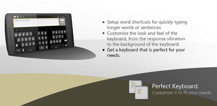 Descripción: Toma el mando de teclado táctil de su dispositivo Android con un teclado perfecto e inteligente para Android. Usted puede personalizar el aspecto del teclado con ocho temas diferentes y añadir funcionalidades adicionales a su dispositivo. Teclado perfecto le permite utilizar diccionarios personalizados, fondo de control y los colores del texto y ajustar la densidad del teclado vibración. En resumen, el teclado perfecto le permite configurar su teléfono Android o el teclado de la tableta táctil para que funcione mejor para usted.