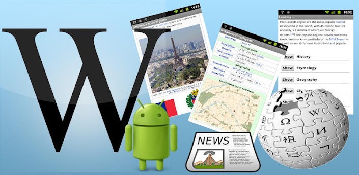 Android aplicaciones para móviles Wikipedia Enciclopedia uso. "La enciclopedia libre". Wiki Pro también trabaja en comprimidos usando Honeycomb (Android 3.0).