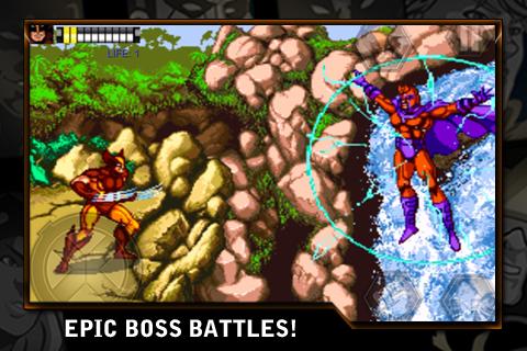 Elige entre algunos de sus clásicos favoritos X-Men, incluyendo: Cyclops, Colossus, Wolverine, Storm, Nightcrawler, o Dazzler. Lucha a tu manera a través de cientos de Centinelas y la batalla súper villanos clásicos como Pyro, The Blob, Wendigo, Nimrod, La White Queen, Juggernaut, Mystique y el Amo del Magnetismo sí mismo, Magneto!