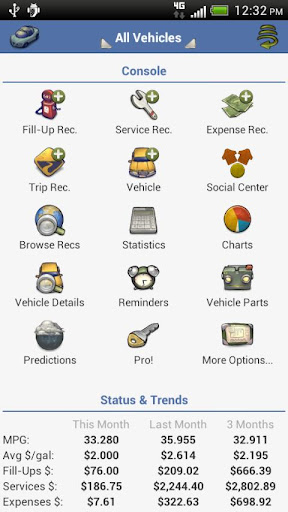 * Acceso rápido a la información más importante de los widgets de la pantalla de inicio:. Console, recordatorios de servicio, Predicciones, eficiencia de combustible y el precio del combustible
