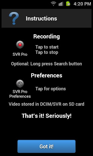 Grabadora de vídeo Secret es una cámara espía para la grabación de vídeo sencillo y profesional es la mejor aplicación disponible en el mercado Android para la grabación de vídeo espía.