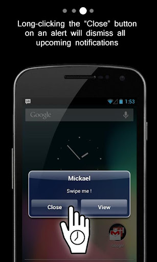 * Long clic en el botón "Cerrar" para cerrar todas las notificaciones