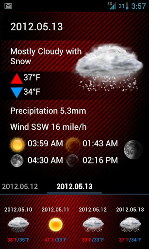 De más alto \ El La temperatura más baja para los actuales y siguientes 3 días;