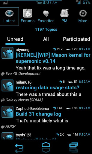 Presentación: Xparent Tapatalk por B-Boy ™ y el Droid HACE! La serie de Xparent Tapatalk son aplicaciones autónomas. No son sólo los temas y no es necesario el Tapatalk acciones instalada para ejecutar los mismos. La opción de configuración para cambiar el estilo del tema es sólo un enlace a la aplicación del mercado para que usted pueda navegar y encontrar el color que te gusta. Una vez instalado, se utiliza el color Tapatalk Xparent de elección para navegar por su forums.There favorita es una gran cantidad de código de ajustes para obtener estas versiones de trabajo de la manera que lo hacen y son 100% tan funcional como la Tapatalk de valores, al igual temática que se adecue el color que te gusta.