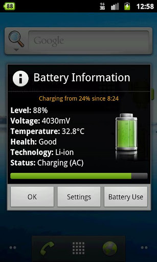 En caso de que no tienen suficiente espacio en su pantalla de inicio, un indicador de batería nivel claro está disponible en la barra de estado de modo que se puede ver, incluso cuando usted está navegando por Internet o enviar mensajes de texto. Puede ser configurado para mostrar en 3 colores diferentes para reflejar los niveles de batería de alta / media / baja. También puede definir sus propias alertas, para que Battery Widget le notificará acerca de cambios en el estado de la batería.