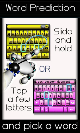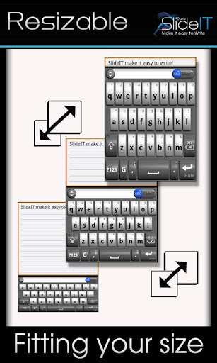 El teclado SlideIT facilita la tarea de escribir textos, ya que en lugar de tener que teclear sobre una letra, permite hacerlo deslizando un dedo a lo largo de las letras, mientras las palabras aparecen "mágicamente" en la pantalla.